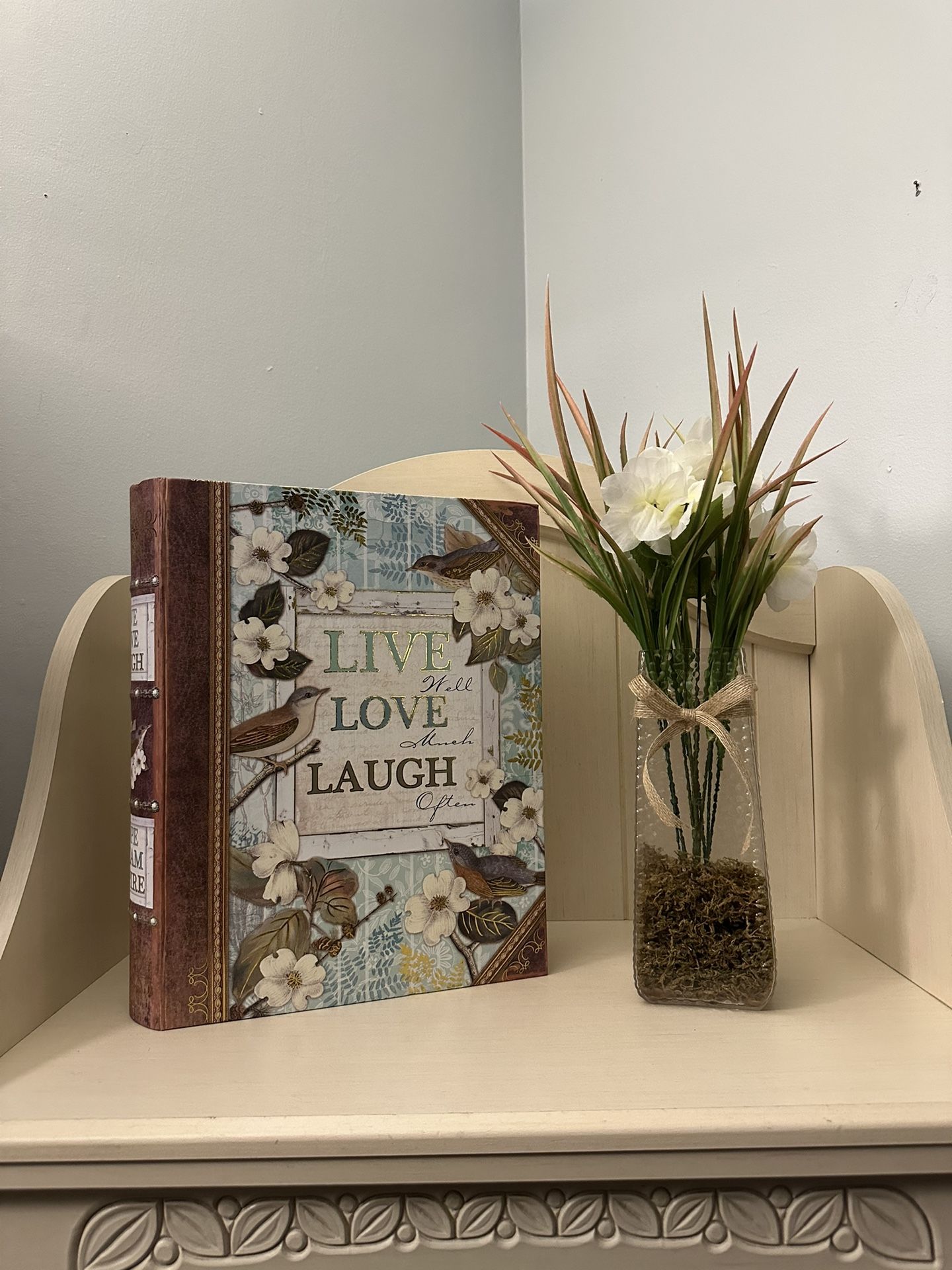 Beautiful Bird Book Box & Vase With Faux Greenery & Flowers