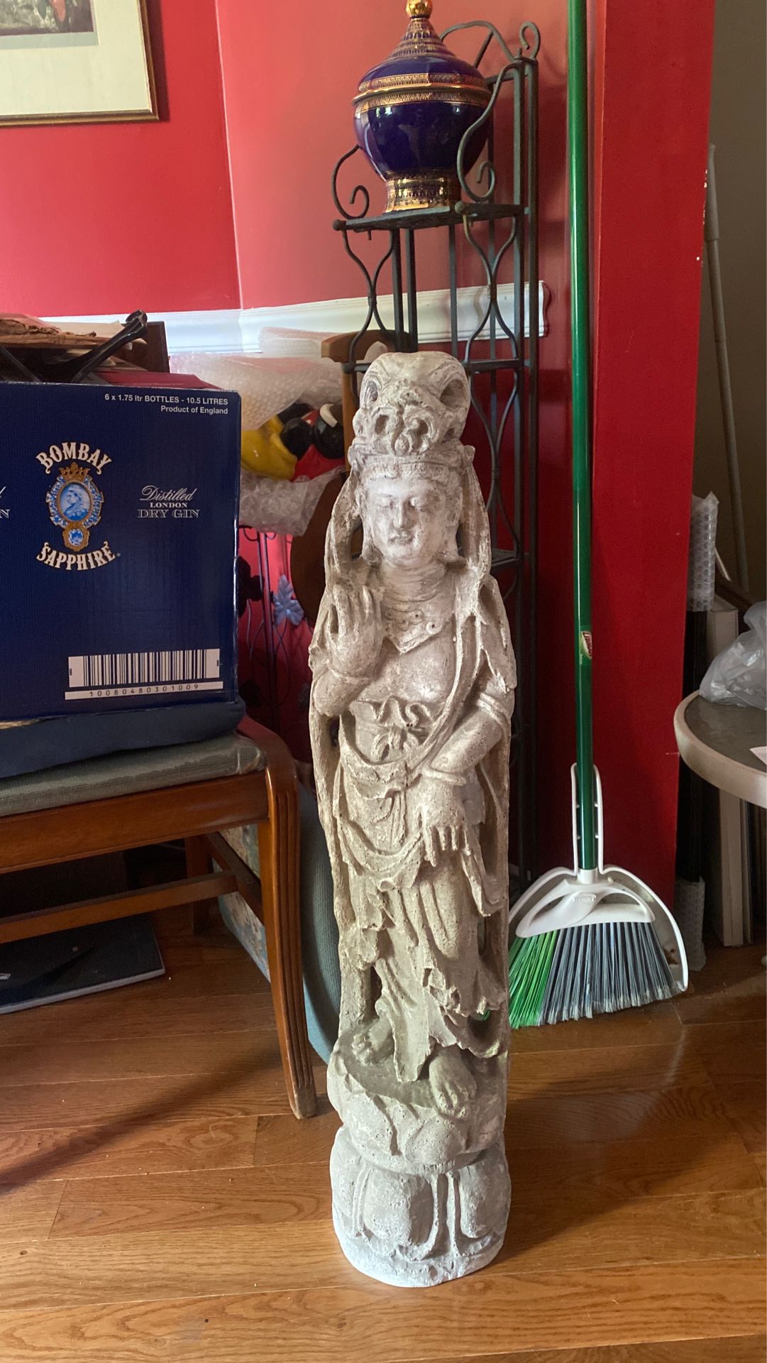 3 foot tall statue of Buddha in excellent condition. Purchased back in the 60s. Looks good in a garden or in a living room or sunroom or whatever