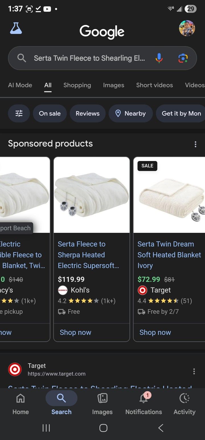 Serta Twin Fleece to Shearling Electric Heated Bed Blanket Ivory: 5-Year Warranty, Machine Washable, Cozy Polyester
