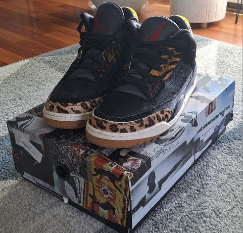 Style CK4344-002 Colorway Black/Sail/Gum Light Brown/Multi-Color Retail Price $225 Size 13 Release Date 12/19/2019 Product Description Jordan Brand shows their wild side with the Jordan 3 Retro SE Animal Pack Fur, now available on StockX. This release shows signs of inspiration from the atmos x Nike Air Max pack that was released just earlier this year. The Animal Pack features two different Jordan 3 designs; this design being one of them. This Jordan 3 Retro is comprised of a black pony hair upper with various animal print overlays. A red Jumpman logo paired with a white midsole and gum outsole completes the design. These sneakers released in December of 2019 for $225. FREE CLEANING WITH PURCHASE