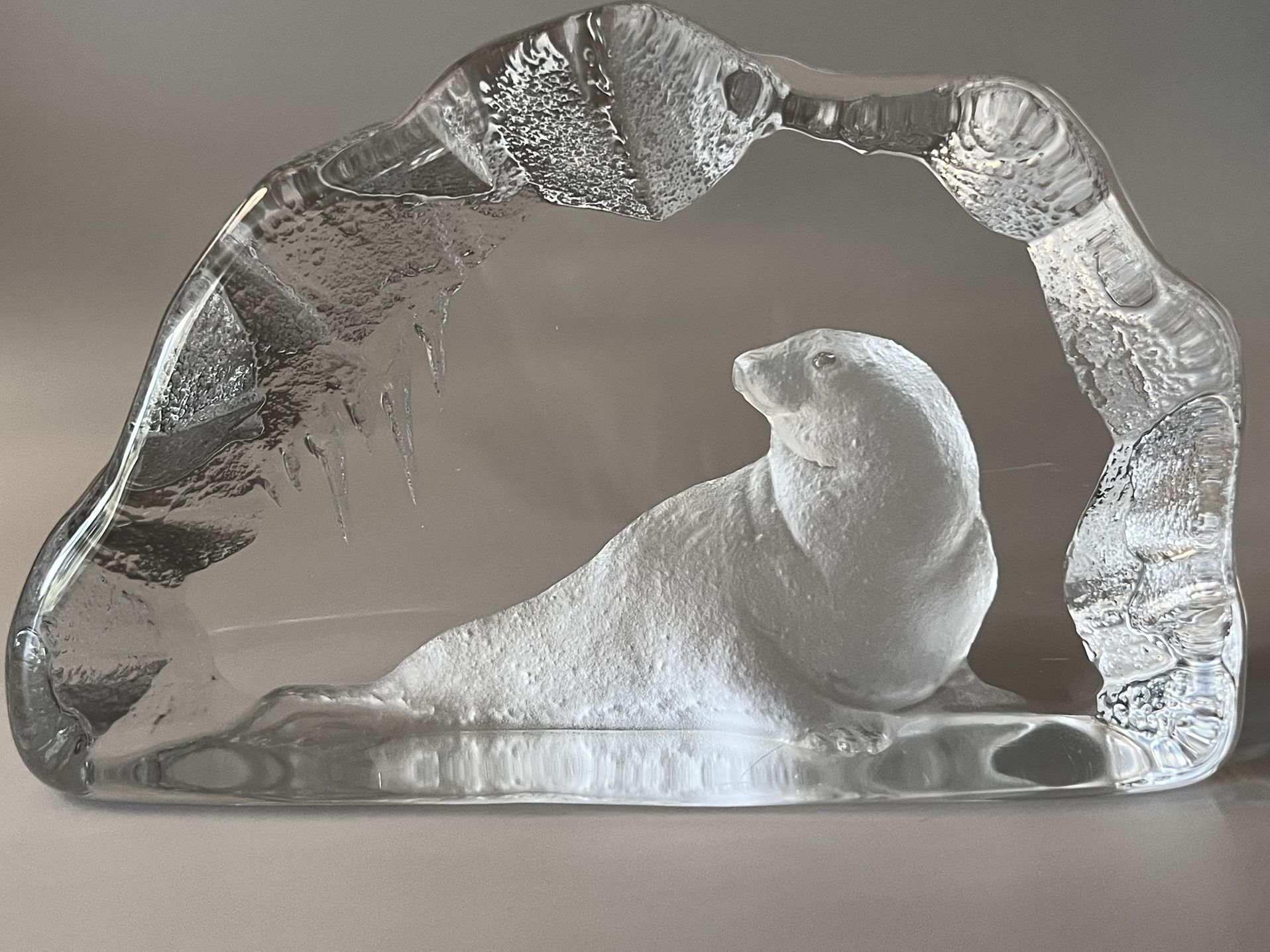 Swedish Crystal Glass Arctic Seal Etched Signed & Numbered MCM