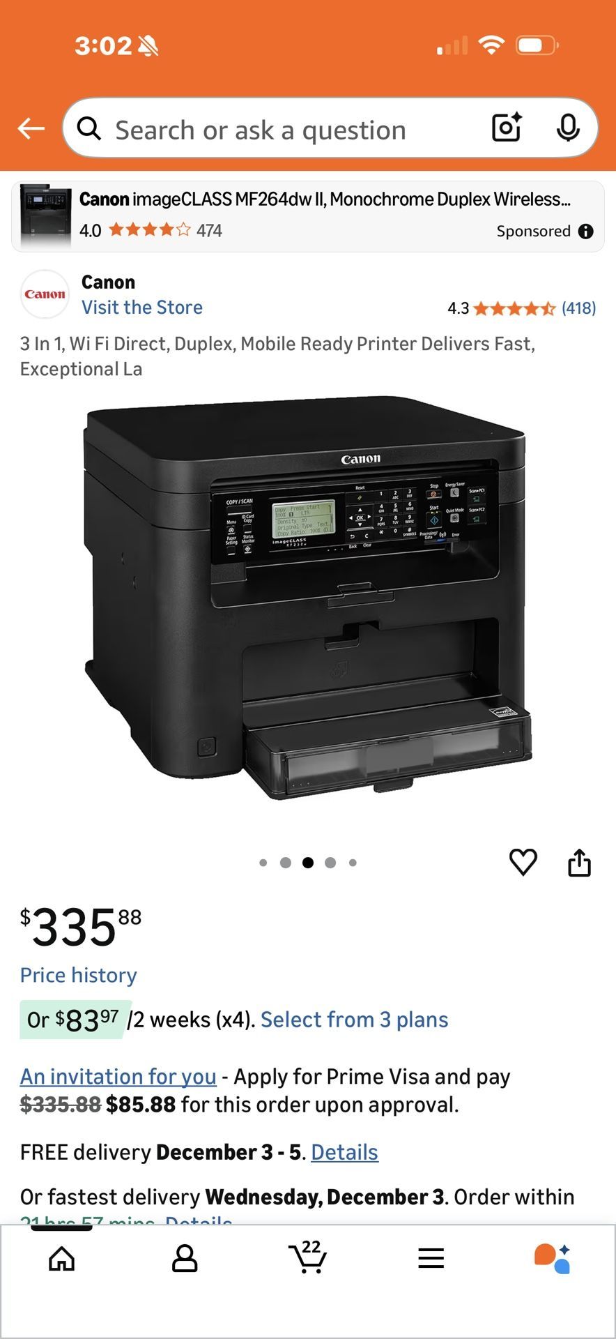 Canon multifunction printer. 3-in-1: Print, Scan, Copy