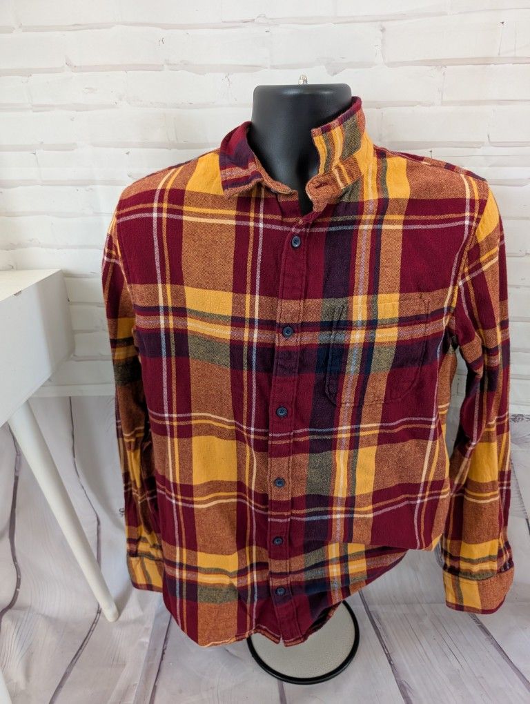 Casual plaid shirt with burgundy and mustard tones. Ideal for everyday wear. Perfect for casual outings or a smart-casual look. Good condition with no visible flaws. Pick up between Higley and Elliot