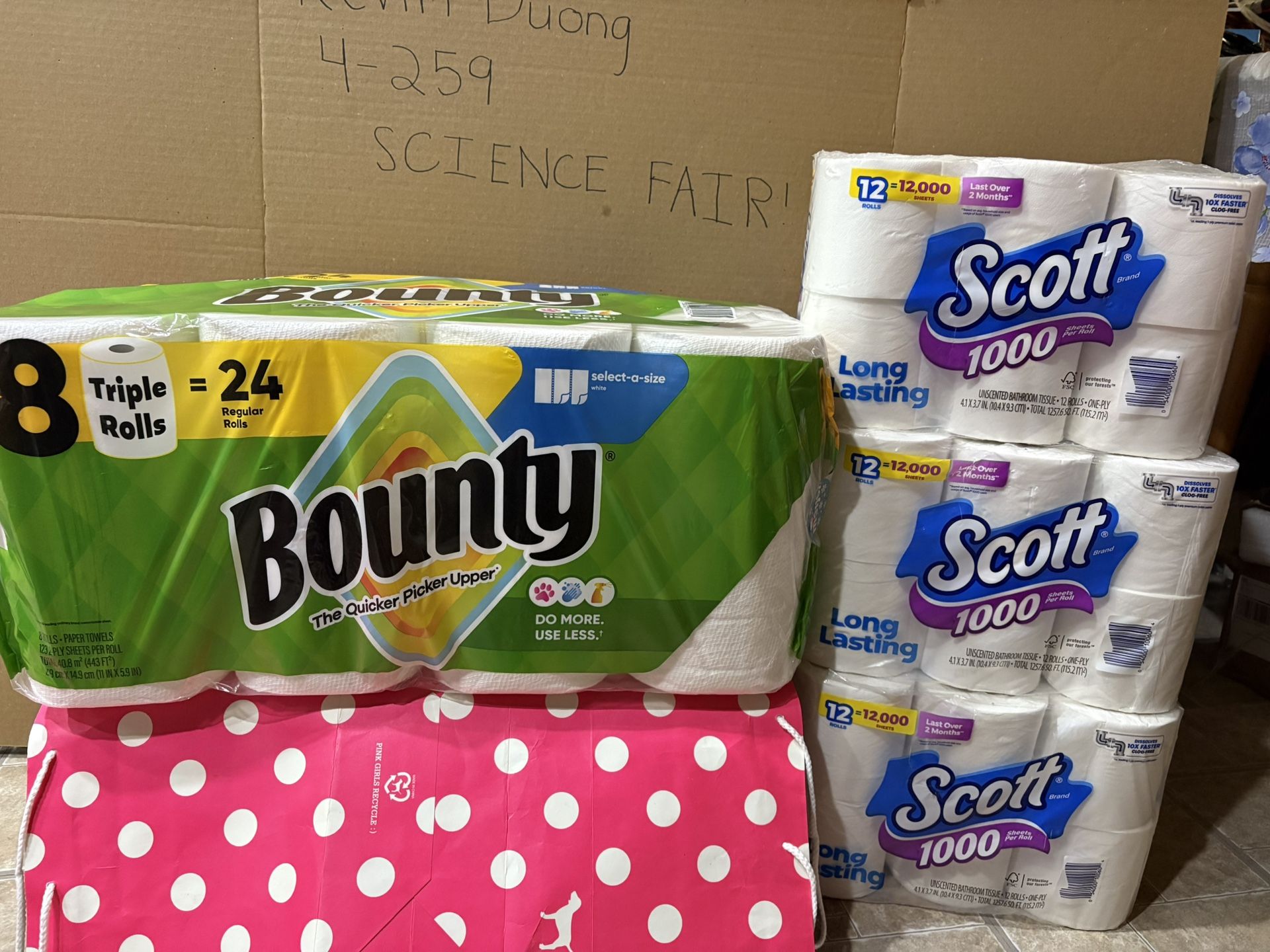 3 PACKS OF SCOTT 12 ROLLS A PACK OF BOUNTY (8 TRIPLE ROLLS) ALL 4 ARE ASKING FOR $50. PICK UP AT ARCHER & CICERO