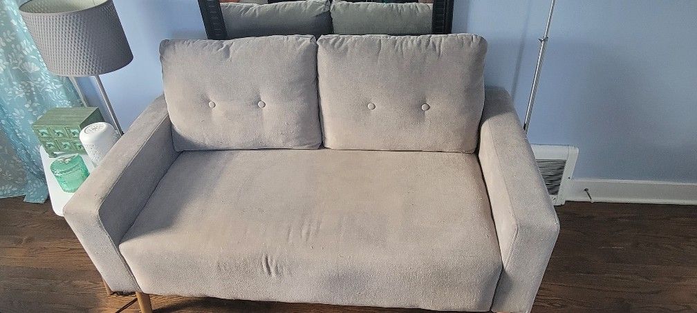 Comfy little loveseat couch good for office seating.. With table and lamp