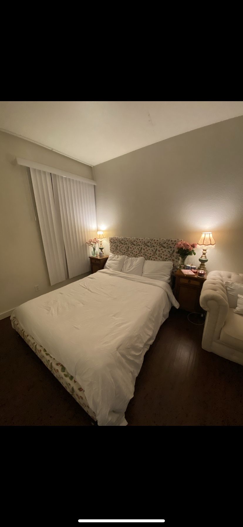 Full or queen bed frame Send offers Clean mattress available too Upholstered Vintage Wood Tufted