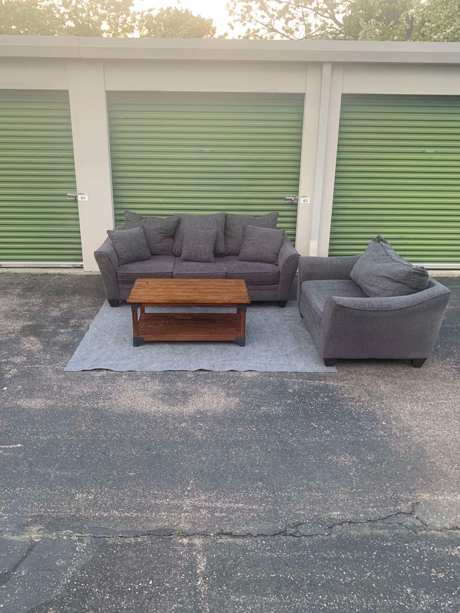 Good condition Gray Sofa And Chair Set With Table For Sale. $100 pickup only. In Norfolk near the zoo.
