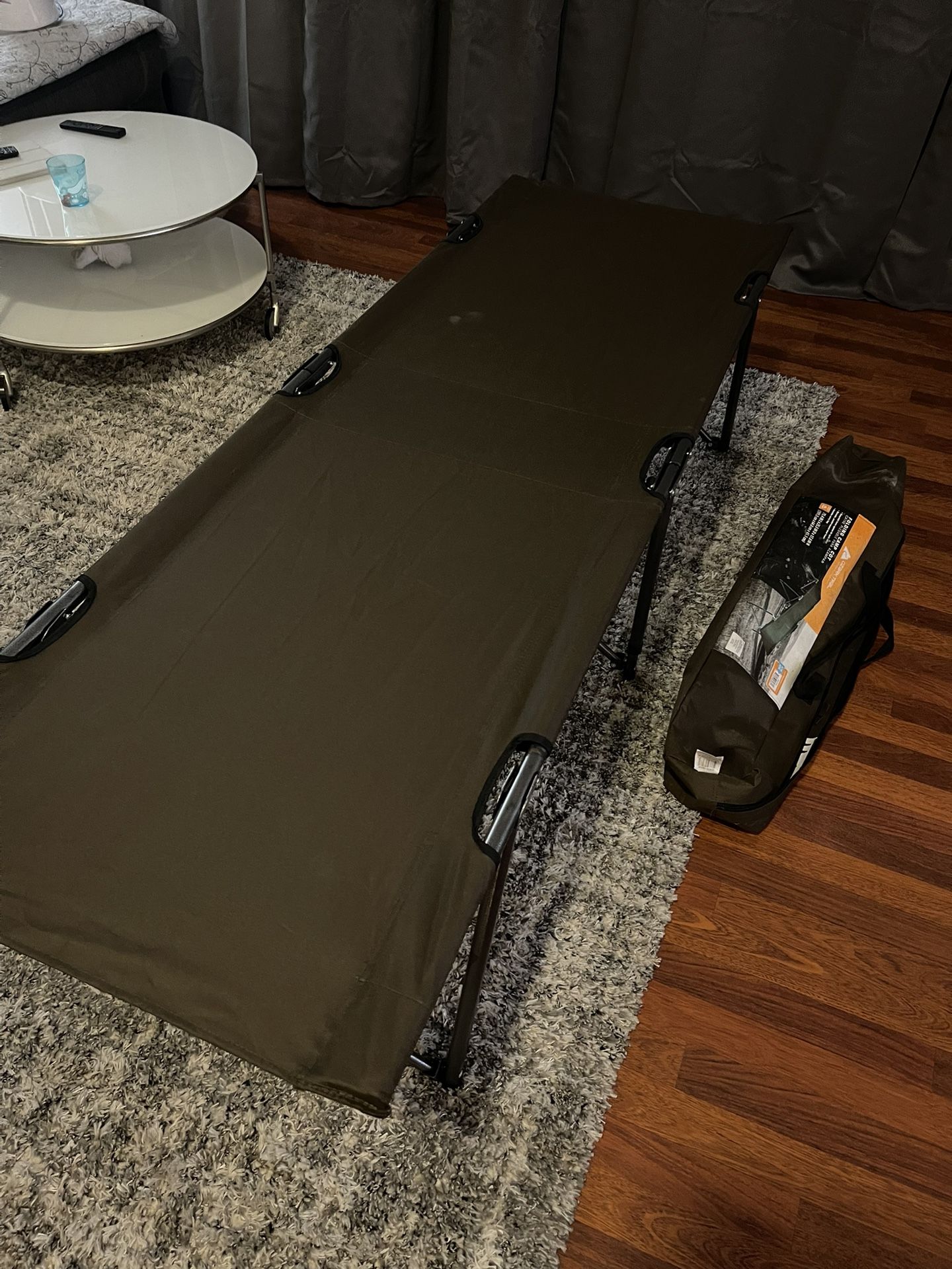 Ozark camping cot Nice height, it’s new haven’t used yet brought for a trip but ended up not going. Very easy setup & very compact. For anymore questions please message me thank you