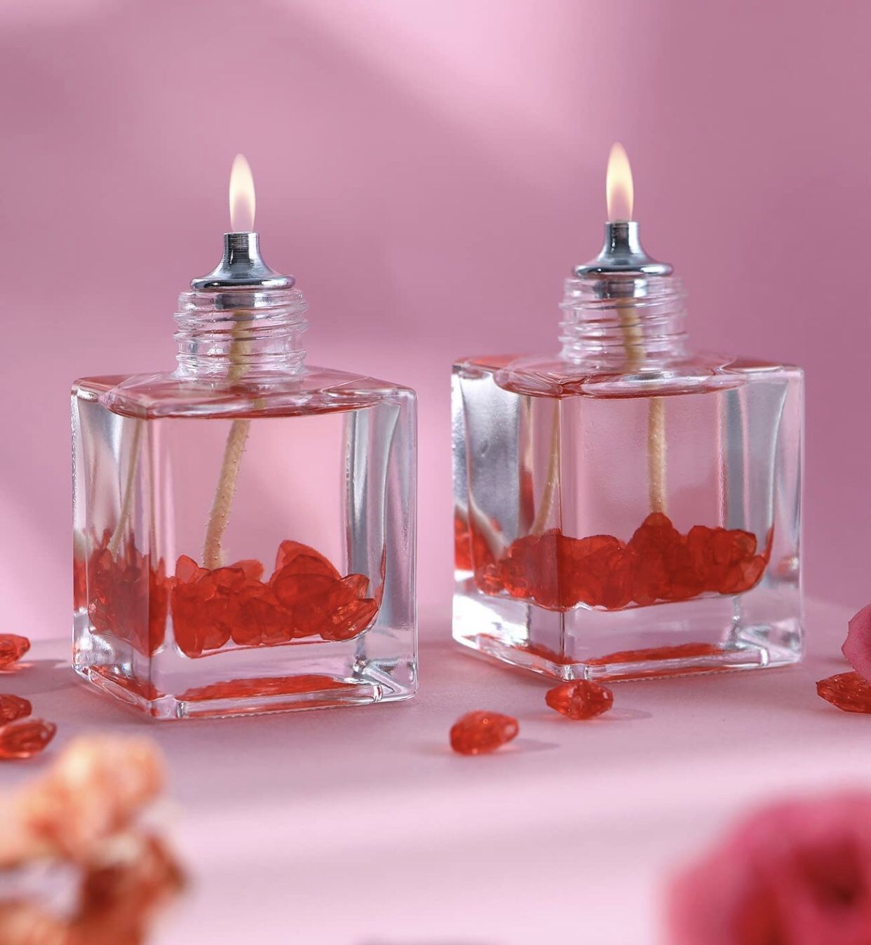 Oil Lamp Candles Valentine's Day Special Design Red Heart Square Decorative Refillable Set of 2 x 100 ml
