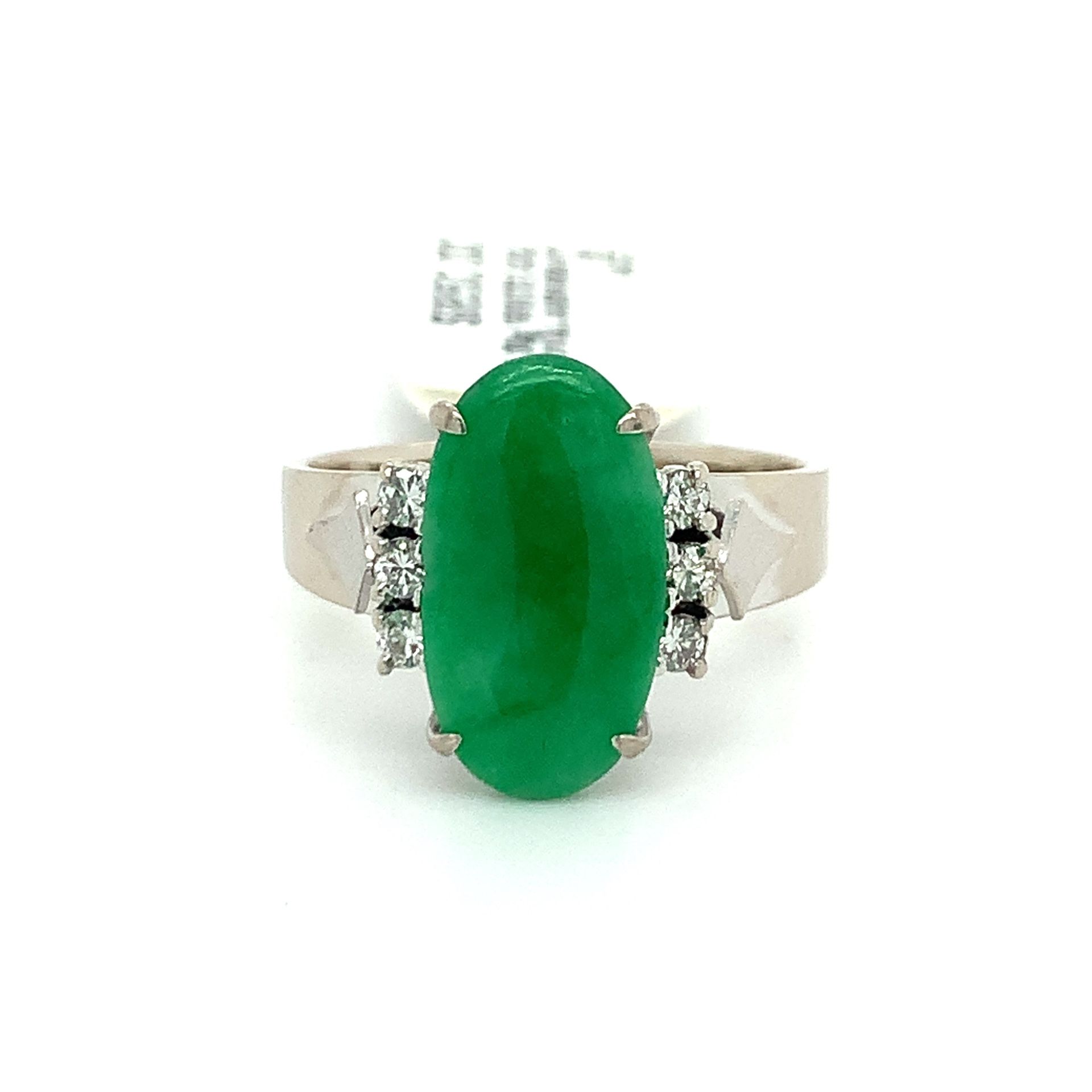 16kt White Gold Oval Jade Ring With 6 Diamonds 6.30grams Size 7 1/2 148458 1