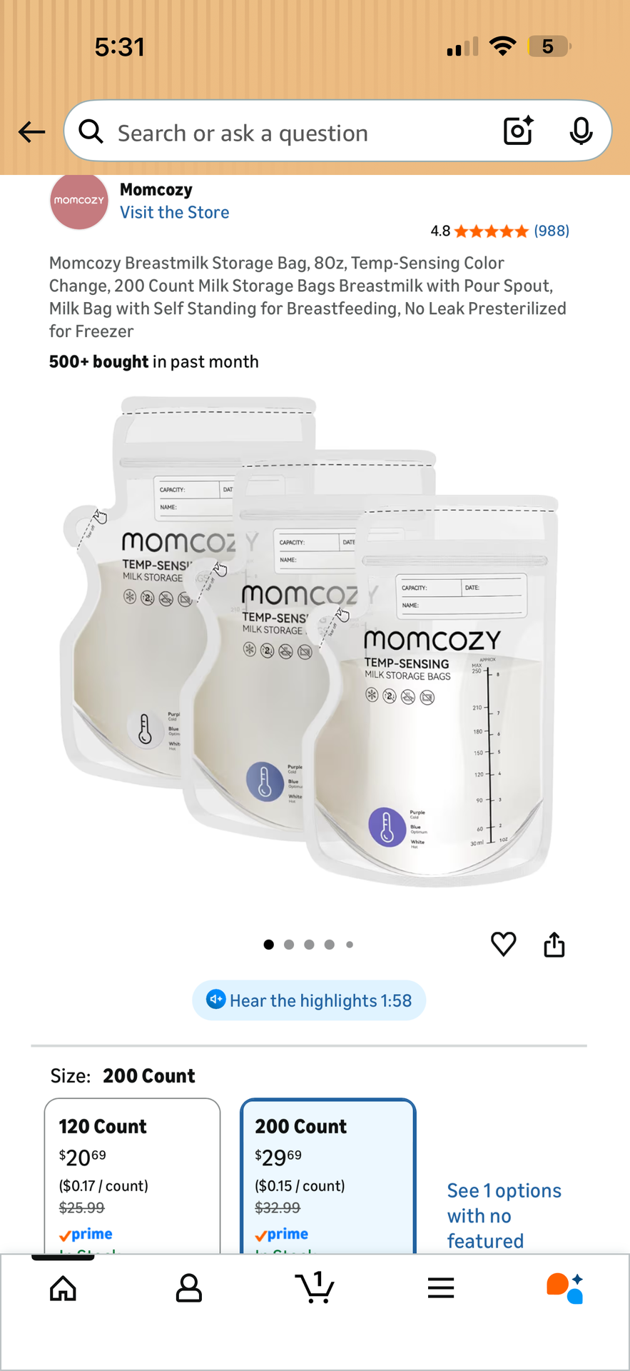 New Momcozy Temp Sensing Milk Storage Bags