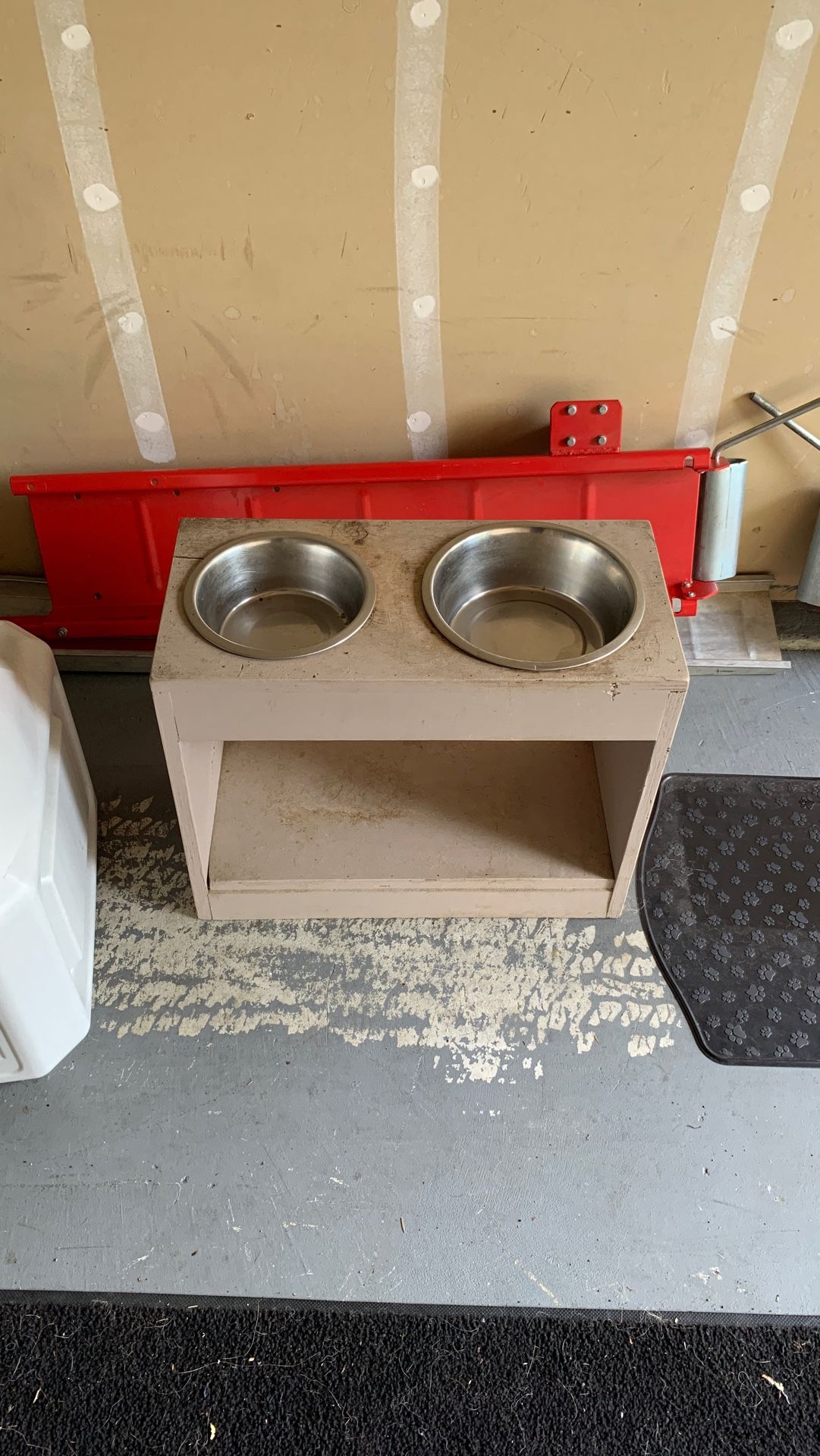 Hand made dog food and water stand. Made from wood, solid and Sturdy