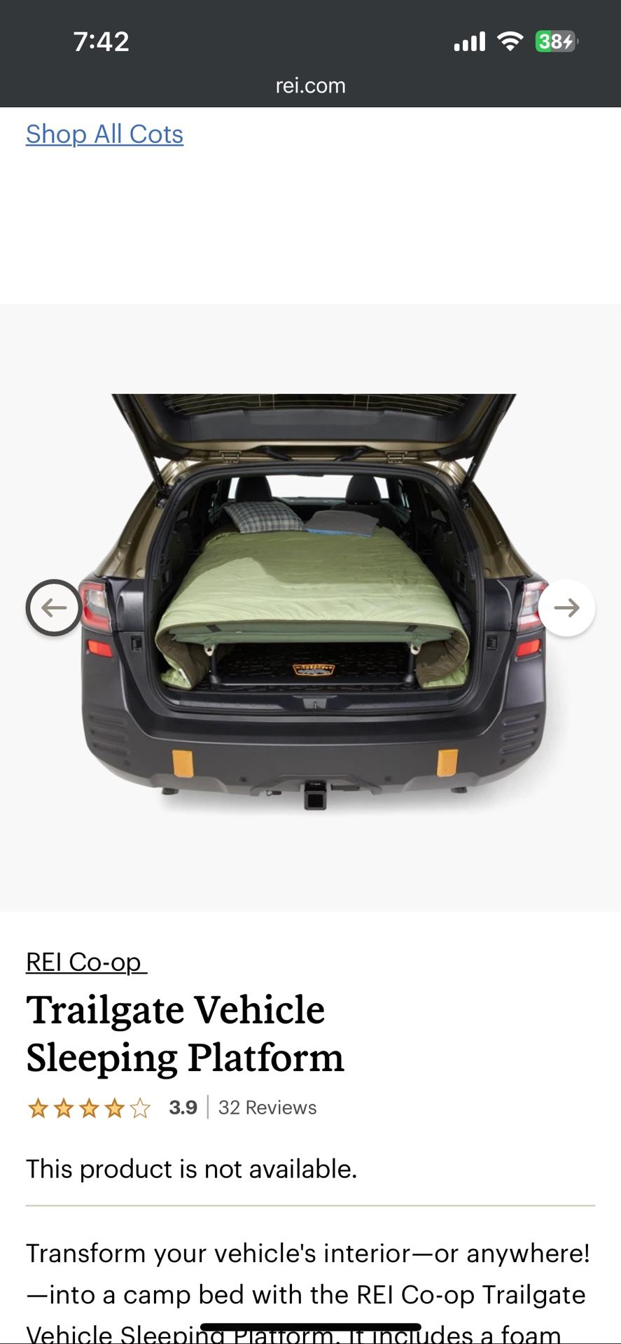 REI Trailgate Vehicle Sleeping Platform almost brand new conditions. Adjustable for different car, suv, or van. Sleep 2 people.