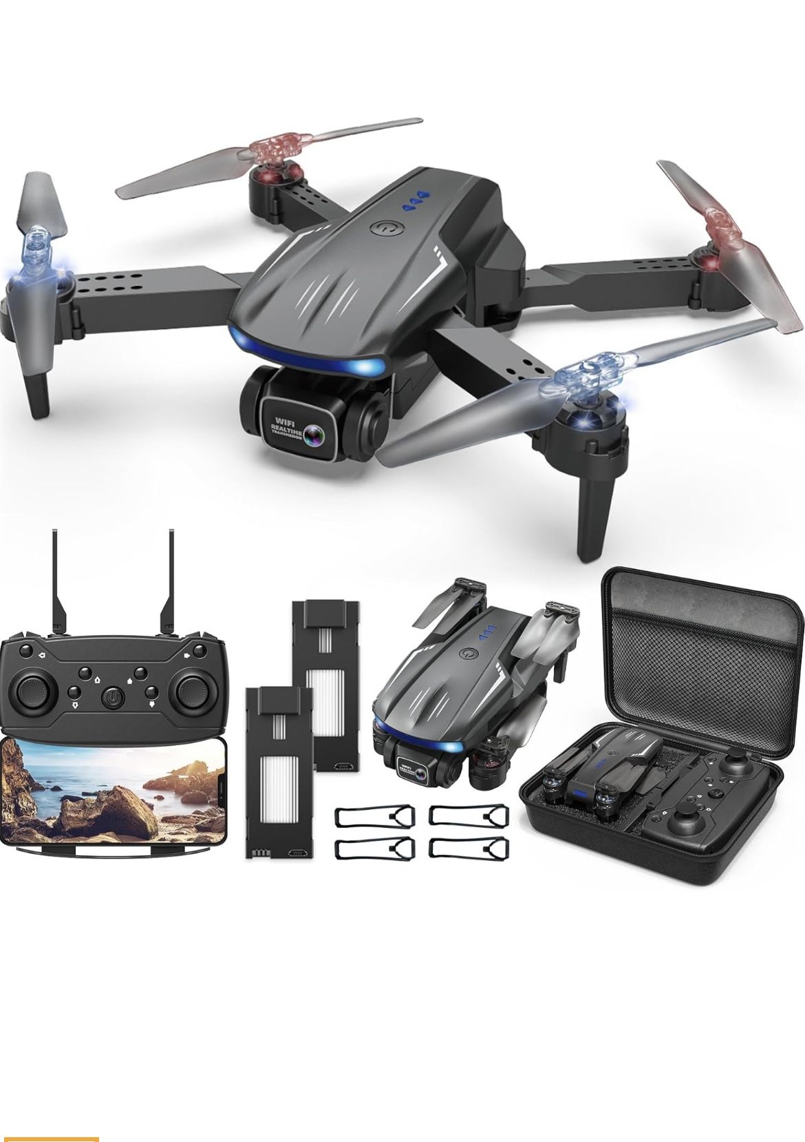 Brand new Drone with REAL WIFI TRANSMISSION Camera 1080P HD, FPV Drones with 2 Batteries,