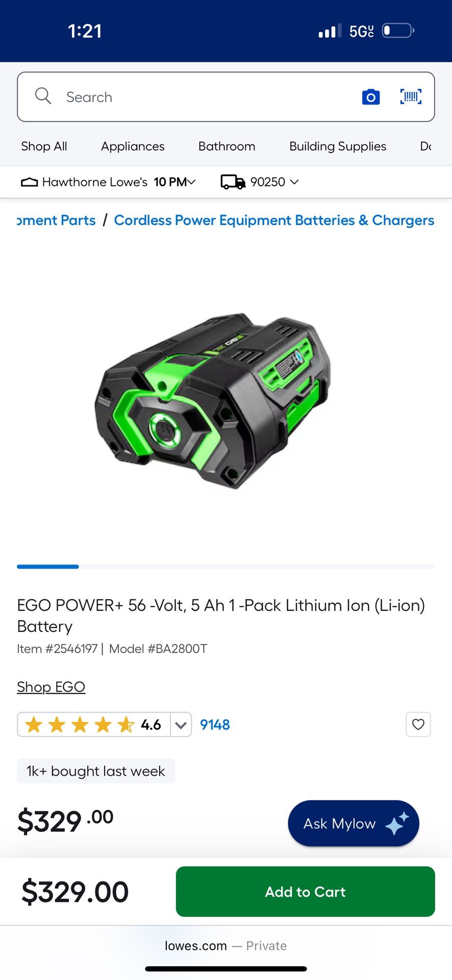 56V CORDLESS LITHIUM-ION BATTERY 5.0 AH