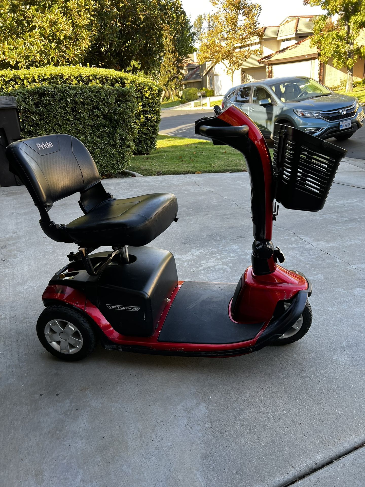 Pride/Victory scooter with very little use. Has some scratches. Comes with 2 onboard batteries and charger. Located in Riverside, Ca