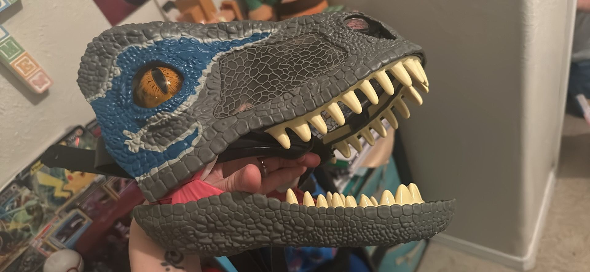 Jurassic World Velociraptor Blue Chomp 'N Roar Electronic Mask with Opening Jaws Mpu at my house Harlingen area