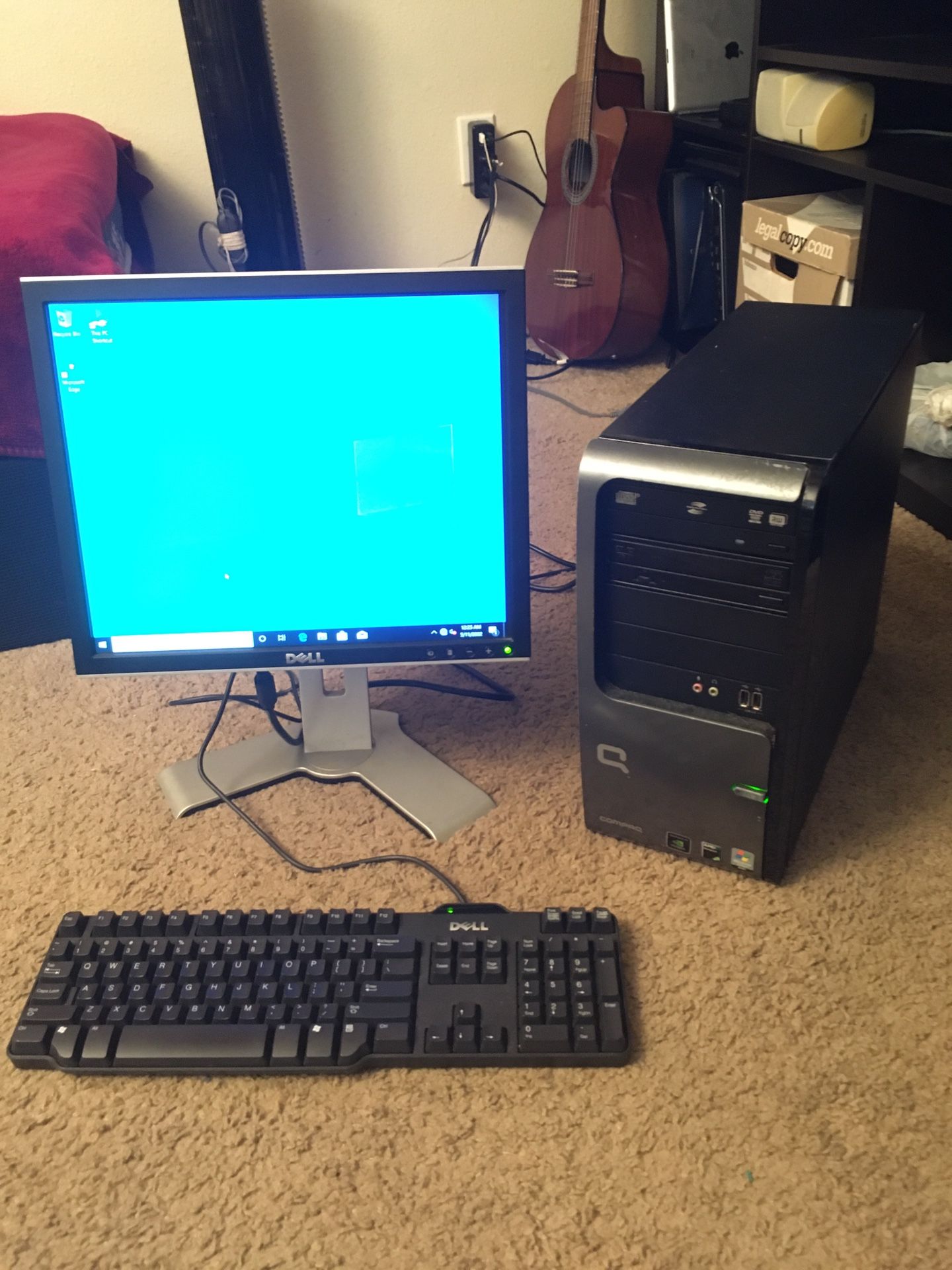 HP Compaq desk top Complete set with Monitor/Mouse/Keyboard. Windows 10 Pro AMD x2 Duo Core 4GB ram 300 GB Hard Drive DVD Wifi card (Able to plug 2 monitor video card) Compaq Presario SR5703W