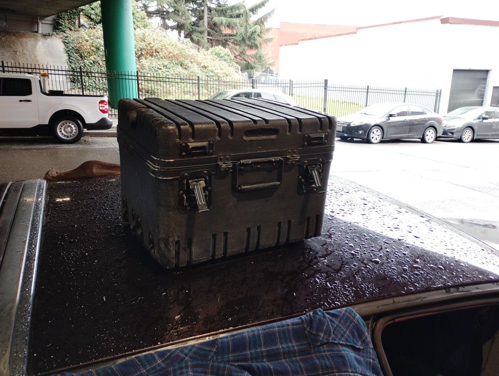 Hard plastic rollaway box latches and hinges work like new space for 2 locks for safe travel
