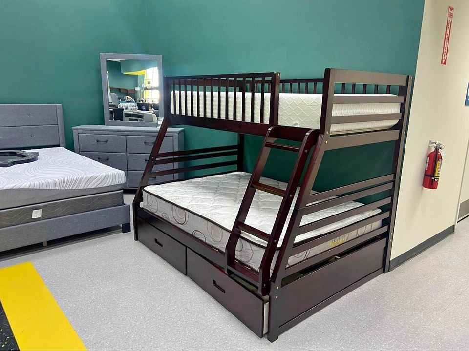 Brand New 🎯 Finance and Delivery 🎗️Brown Twin Full Bunk Bed With 2 Drawers