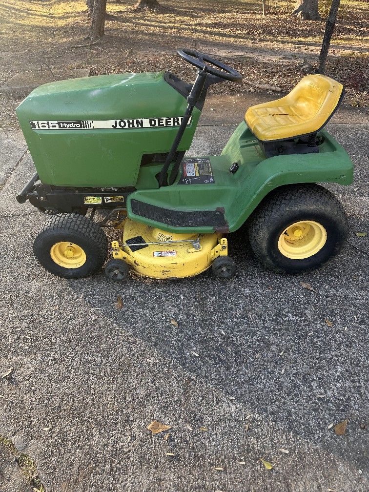 John Deere 38” LX 176 Riding Lawn Mower New spark plug Newair filter New fuel filter All new Drive/Blade/PTO Belts Trans oil changed Original John Deere tires on rear This thing is a HOSS BOSS! Cons: Small hole in rear of deck and hood does not match mower but looks period correct. Please see attached pictures. Thanks for looking any questions please ask. all sales final as is