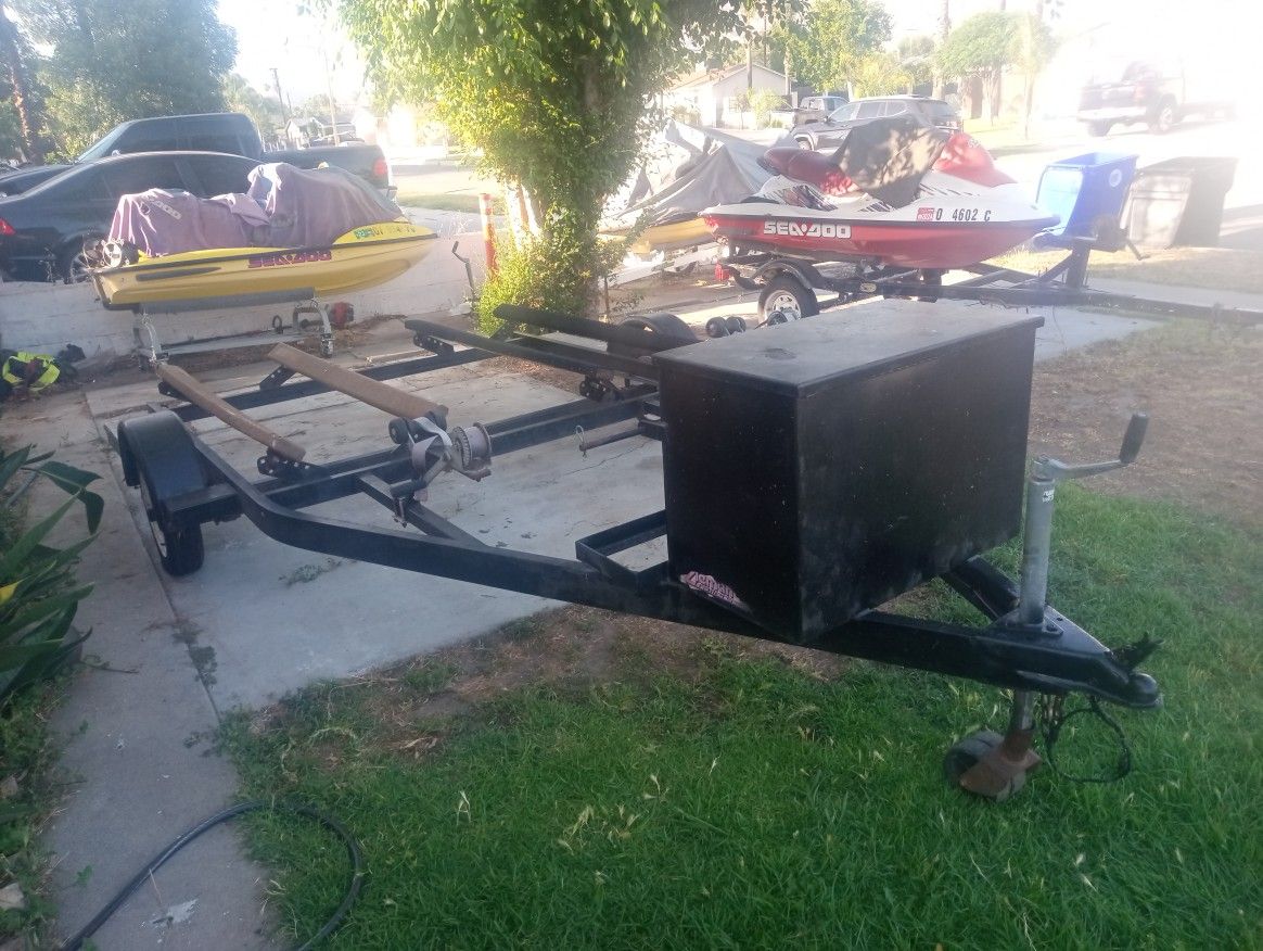 99 SEADOO DOUBLE JET SKI TRAILER WITH TITLE NEW LIGHTS AND BUNK CARPET WITH BOX AND FUEL CAN HOLDER