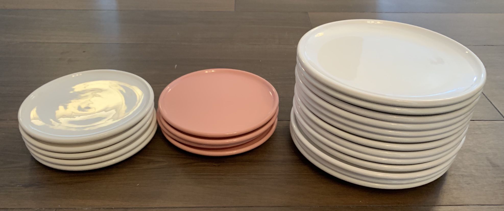 Plates Platos lamp shades collection collectibles plates China milk glass gold earrings 14 k $800.00 lamps 75 each porcelain brass