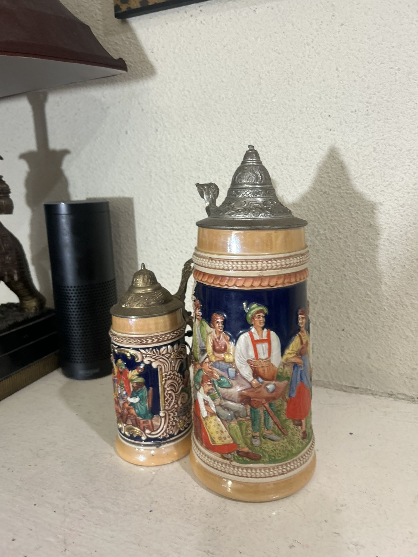 Vintage German Ceramic Beer Steins Set with Metal Lids