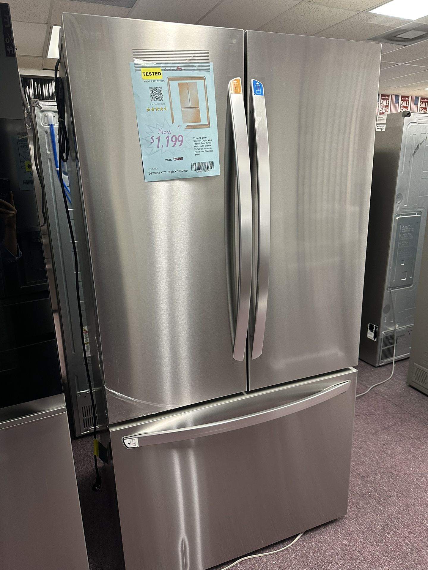 Refrigerator, 36” French Door Refrigerator Free Delivery With Warranty