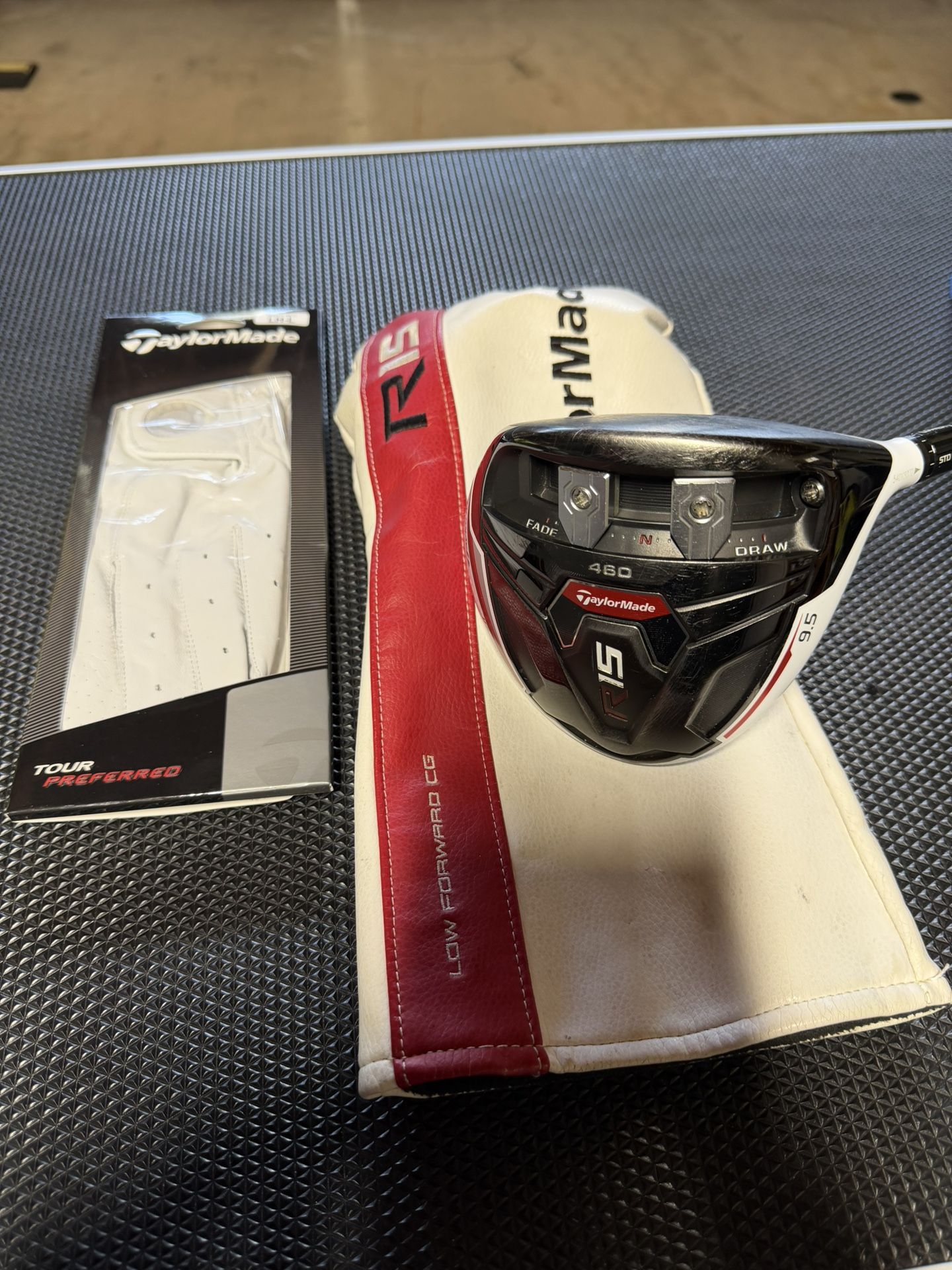 TaylorMade R15 RH Driver 9.5 Matrix Ozik 70M 4 Black Tie S Flex shaft with headcover and a new left handed large tour preferred white glove Feel free to ask any questions you may have. Can meet up in Escondido if need be. I work in Escondido Monday - Friday during the day and in Temecula in the evening and weekends. Thank you Key words: Golf, Golf set, Golf Club, Golf Clubs, Driver, Wood, Woods, Hybrid, Hybrids, Iron, Irons, Iron Set, Pitching, Approach, Gap, Sand, Lob, Wedge, Wedges, PW, AW, GW, SW, LW, Putter, TaylorMade, Cleveland, Callaway, Ping, Titleist, Cobra, King Cobra, Srixon, Bridgestone, Mizuno, XXIO, PXG, Honma, MIURA, Kirkland, Scotty Cameron, Odyssey