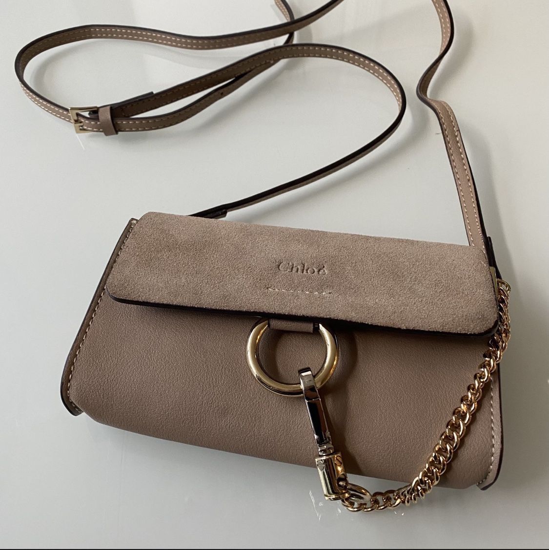 OPEN TO OFFERS - 7”x4”x1.5” Chloe Bags Chlo Purse Designer Mini Faye Suede & Leather Wallet On A Chain Beige Neutral