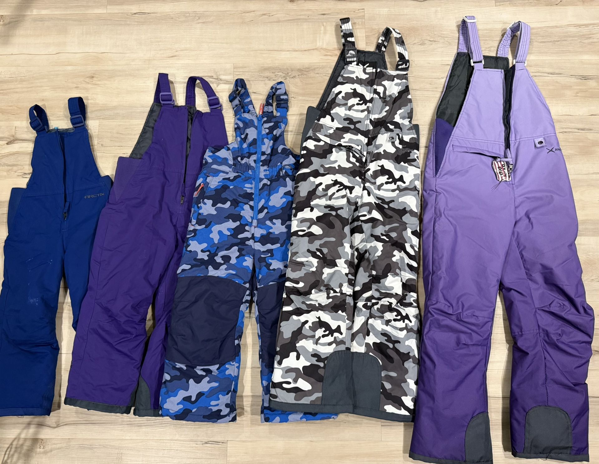 Blue is 4T ($10) Purple 5t ($10) Blue camo is XS ($20) Black and White camo is S ($20) Purple Ombré is Medium ($20)
