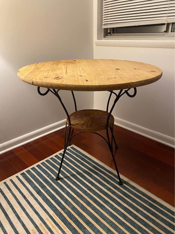 Unique Spanish style dining table. Table top is 3 feet in diameter and 30” tall. Wrought iron frame with wicker design shelf. This is a one of a kind table, similar styles are going for $2k+ on wayfair. Only selling because I am moving cross country and couldn't fit it. https://offerup.com/redirect/?o=aHR0cHM6Ly93d3cud2F5ZmFpci5jb20vZnVybml0dXJlL3BkcC93aWxsaXN0b24tZm9yZ2Utd2luZy1wbGFzdGljLWJhci10YWJsZS13MDEwMTU5NDk3Lmh0bWw=