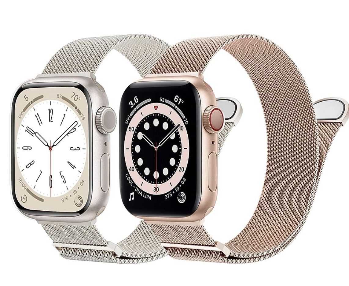 2 Pack Metal Magnetic Bands Compatible with Apple Watch Band 41mm 40mm 38mm Women Men, Stainless Steel Mesh Loop Replacement Strap for iWatch SE Series 8 7 6 5 4 3 2 1, Starlight/Rose Gold Brand New