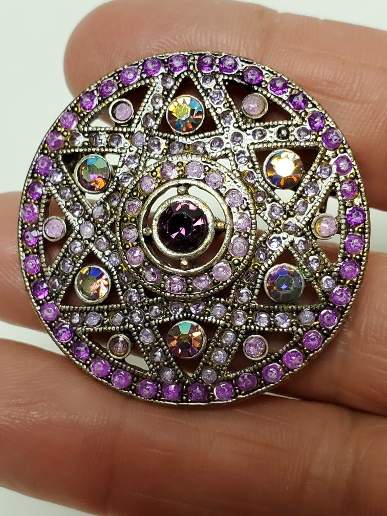 Gorgeous Purple Lavender And Irridescent Clear Rhinestones Silvertone Brooch. Pre-owned in great condition
