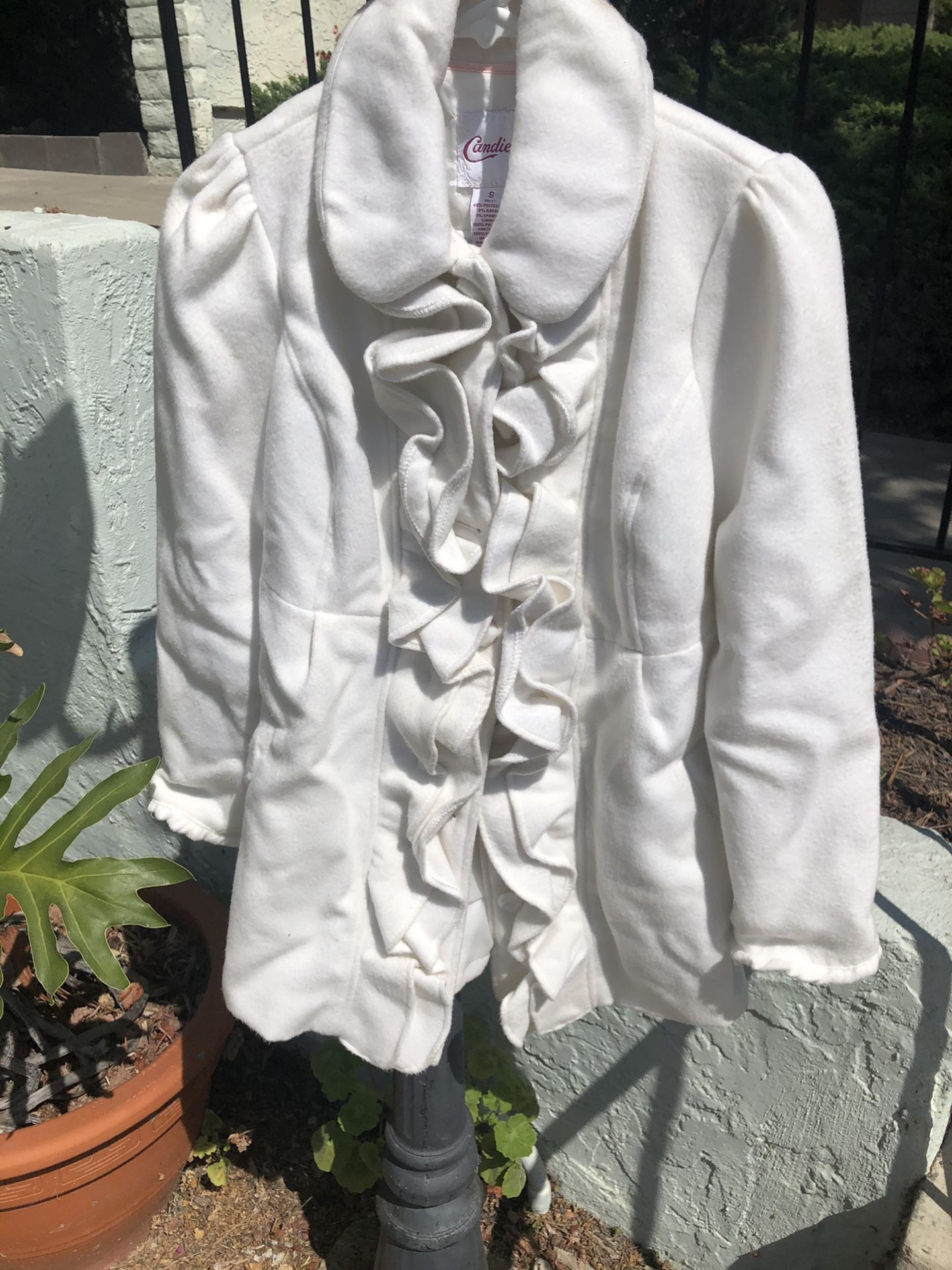 Small white/cream colored coat. Small spot on back-see last pic. Otherwise in great shape.