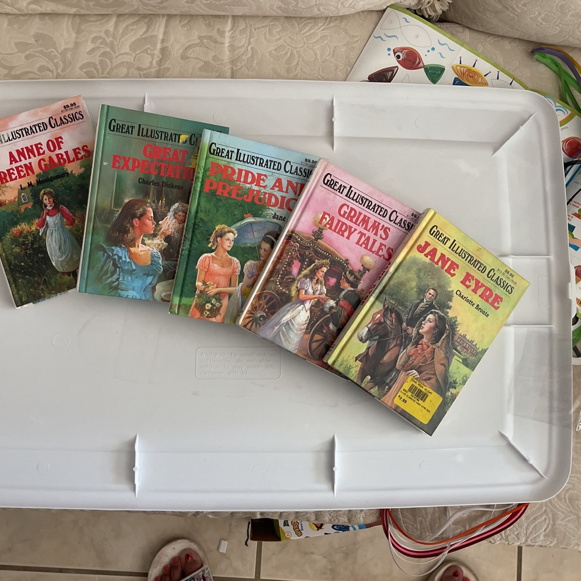Annie of Green Gables Great expectations by Charles Dickens pride, and prejudice, by Jane Austen Grimms fairy tales and Jean Eyre Five dollars each or five for 20