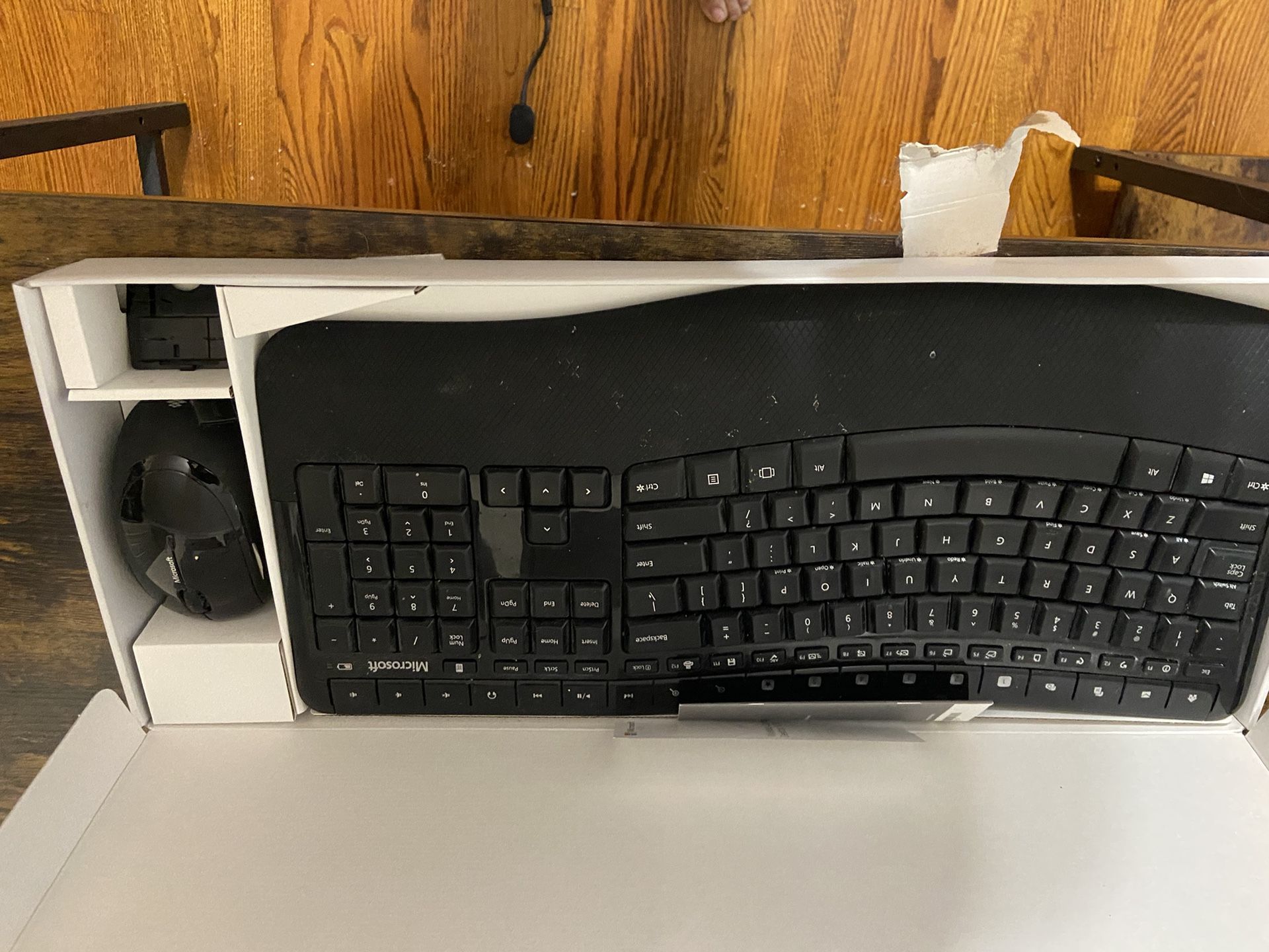 Keyboard cords and mouse. Opened but not used wireless comfort 5050