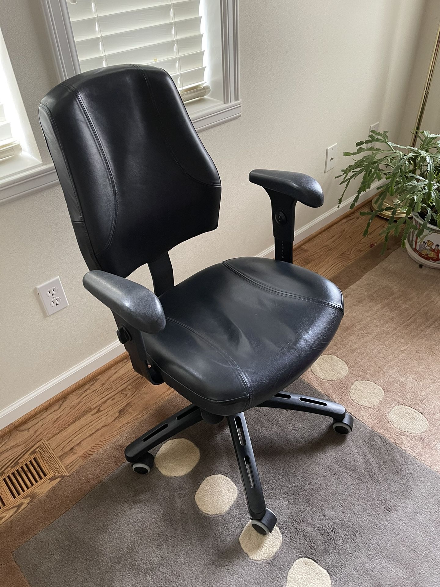 Office desk chair made from artificial leather. No rips pretty clean and in pristine condition.