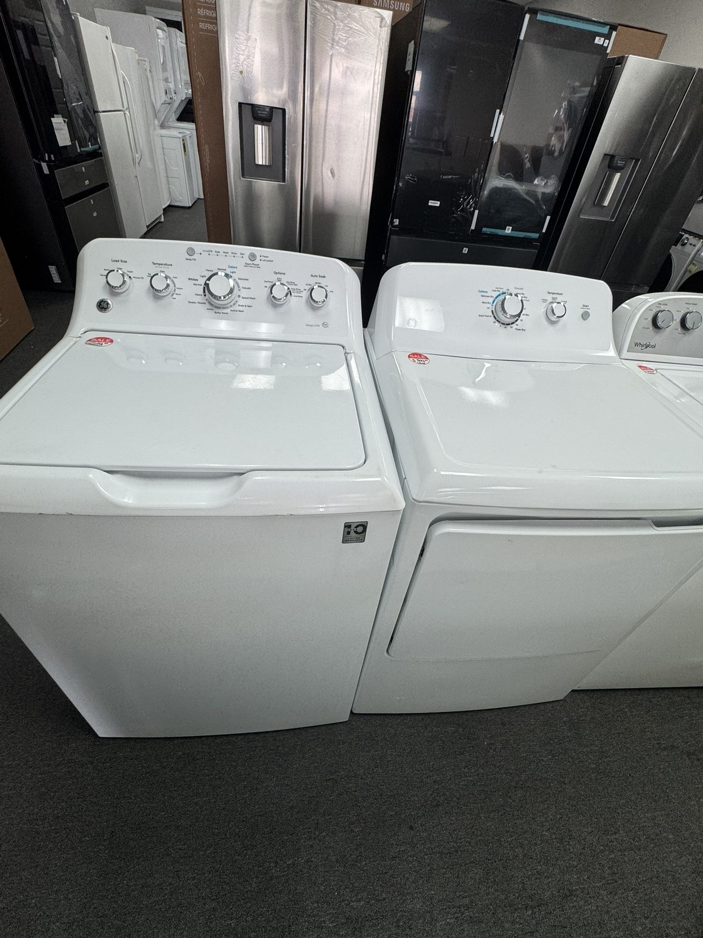 GE washer and dryer large capacity set used We stock washers, dryers, stoves, cooktops, refrigerators, dishwashers and microwaves. Samsung LG Frigidaire Whirlpool Kitchenaid GE Maytag and Bosch We carry new open box, used and scratch and dent appliances 1 year warranty new open box appliances delivery and installation available