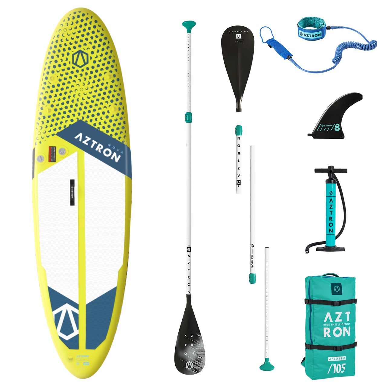 Great quick gift! Full 1 year warranty from your date of purchase. NEW/ Compact size Full board size for most paddlers Double Chamber LITE Tech HARD FACTS/ Double Chamber LITE Tech with 60L inner chamber for basic safety buoyancy Lightweight yet stiff Compact smart folding concept makes the SUP pack down to half of the normal size Durable drop-stitch core material 4mm thick diamond pattern EVA traction deck 4+1 D-ring connectors for bungee system and safety leash Easy-to-carry side grab handle Twin fin system PACK SMART, TRAVEL LIGHT Traveling with a SUP now becomes easier than ever before! This refreshing Compact SUP boasts its revolutionary smart-folding concept and AZTRON’s signature Double Chamber construction, making it super portable while maintaining good performance