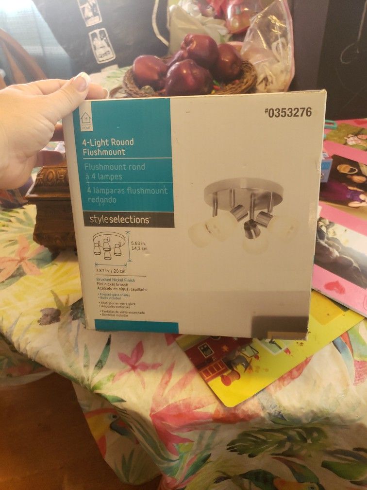 4 Light Round Flushmount Brushed Nickel Finish . New