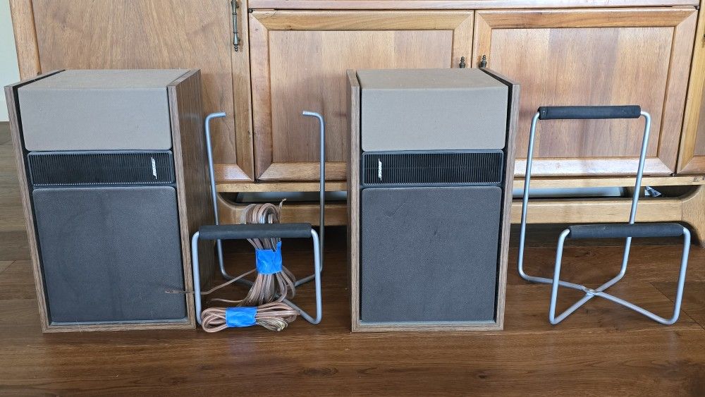 Need cleaning, but sound like new. Includes some speaker wire and stands.