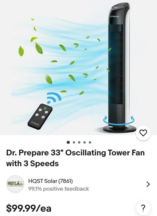 Brand New Dr. Prepare 33" Oscillating Tower Fan with 3 Speeds