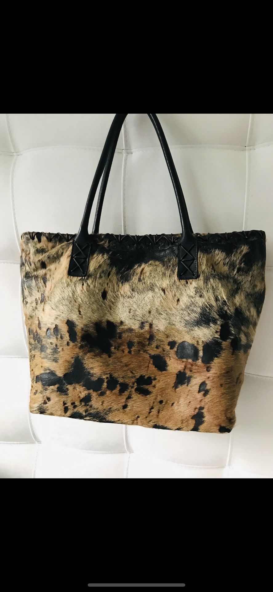 Berge Made In Italy Calfskin Hair Leather Distressed Large Brown Tote Bag. Beautiful calfskin hair leather large bag is in very good condition, gently used. Size 16”-12”-6”