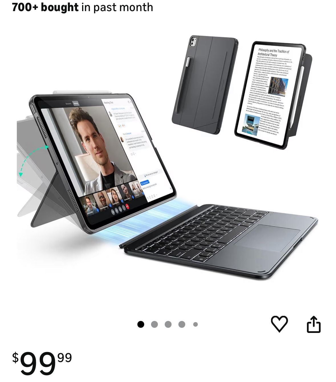 New Fits iPad Pro 13 in (M4|M5) Detachable keyboard Kickstand Includes usb c - usb c cable