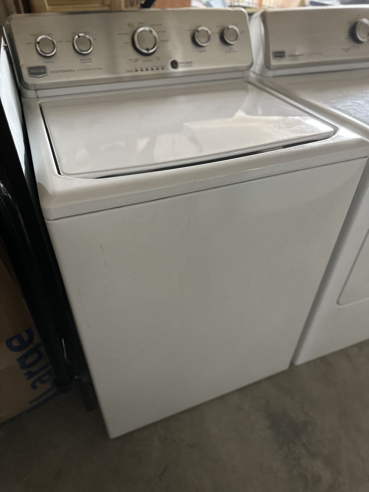 Maytag Washer Came with house but we never used it. Sold As-Is 27" Top Load Washer with 3.6 cu. ft. Capacity, 9 Cycles, Power Wash Cycle, Cold Wash Cycle, Auto Water Level Sensor, Cycle Status Lights and Porcelain on Steel Wash Basket: White Brand: Maytag Capacity: 3.4 Cu. Ft. Wash Cycles: 9 Max Spin Speed (RPM): 700 Stackable: No Steam Cycle: No Type: Top Load Width: 27 1/2" Depth: 27" Height: 43" Volts: 120 Volts Amps: 15 Energy Star Rated: Yes CEE Rating: Not Available Centennial Top Load Washer with Cold Water Wash Option Thank You for your patience as it took me awhile to create this video! Here’s the link showing that this Washer works: https://offerup.co/faYXKzQFnY?$deeplink_path=/redirect/