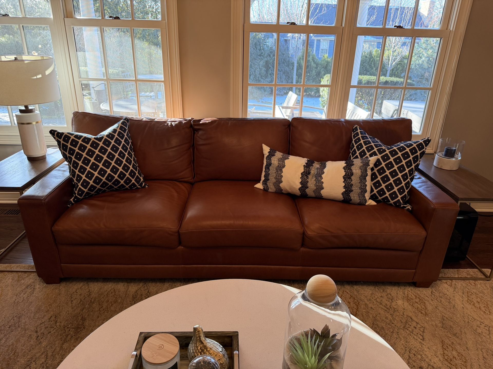 Gorgeous, custom Maxfield leather sofa from Walter E. Smithe. An heirloom-quality piece made by North Carolina’s Saddleworks Purchased in 2018 for $4,000+, this same sofa would cost $7,000–$9,000 at today’s retail prices Details: • Bench-made in North Carolina by Saddleworks • 100% top-grain aniline leather in a rich cognac/saddle/rust tone with a soft, natural patina • Cushions professionally refreshed 5 years ago. Still firm, supportive, and super comfy • Classic “Lawson” design with clean lines and deep seating • Excellent condition from a smoke-free home Dimensions: 91”W x 39”D x 31”H (Back Height 31”, Arm Height 22.5”) Price: $1,000 Location: South Wheaton, near Brighton & Somerset *Crossposted* Please note: Heavy, solid-frame piece. Bring two people and a truck for pickup.