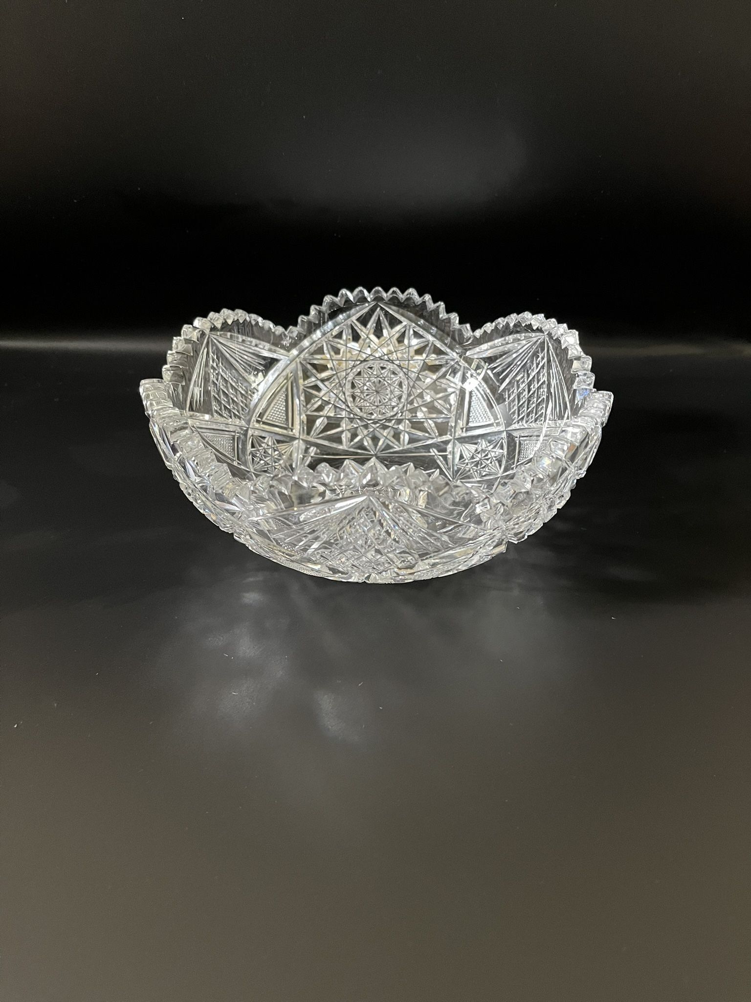 Lead Crystal Bowl Hand Cut Scalloped Saw Tooth Rim CASH ONLY PICK UP ONLY