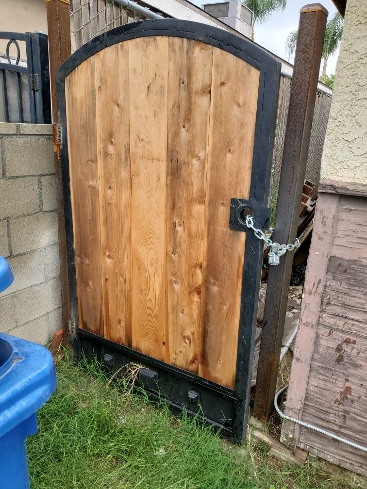 heavy metal with wood gate door moving need to sell asap 300 41 3/4in wide 69in tall 2in thick square tube frame